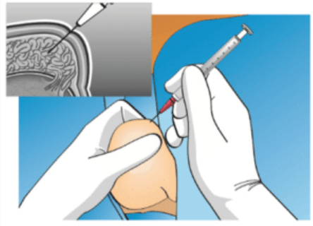 - Dùng kim tiêm chọc vuông góc vào mào tinh hoàn, vừa hút vừa kéo kim tiêm ra.