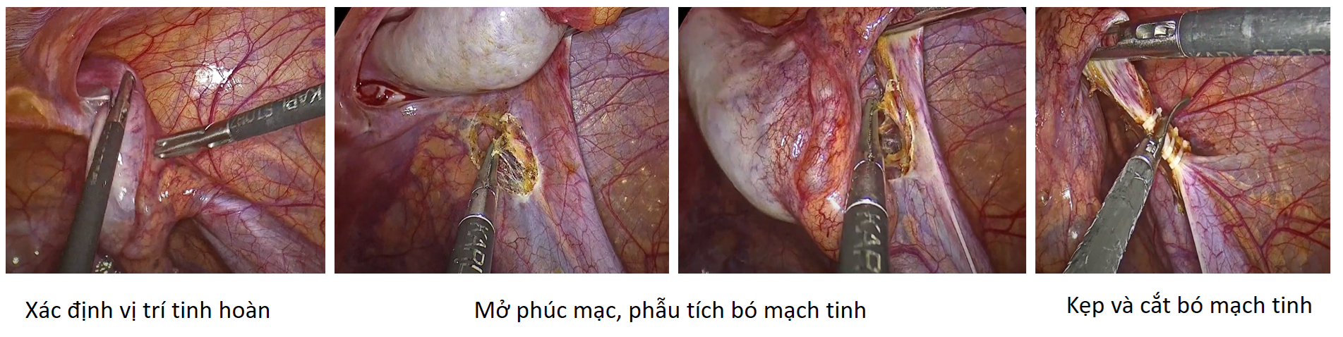 - Xác định dây chằng bìu - tinh hoàn, cặp cắt hoặc đốt điện dây chằng