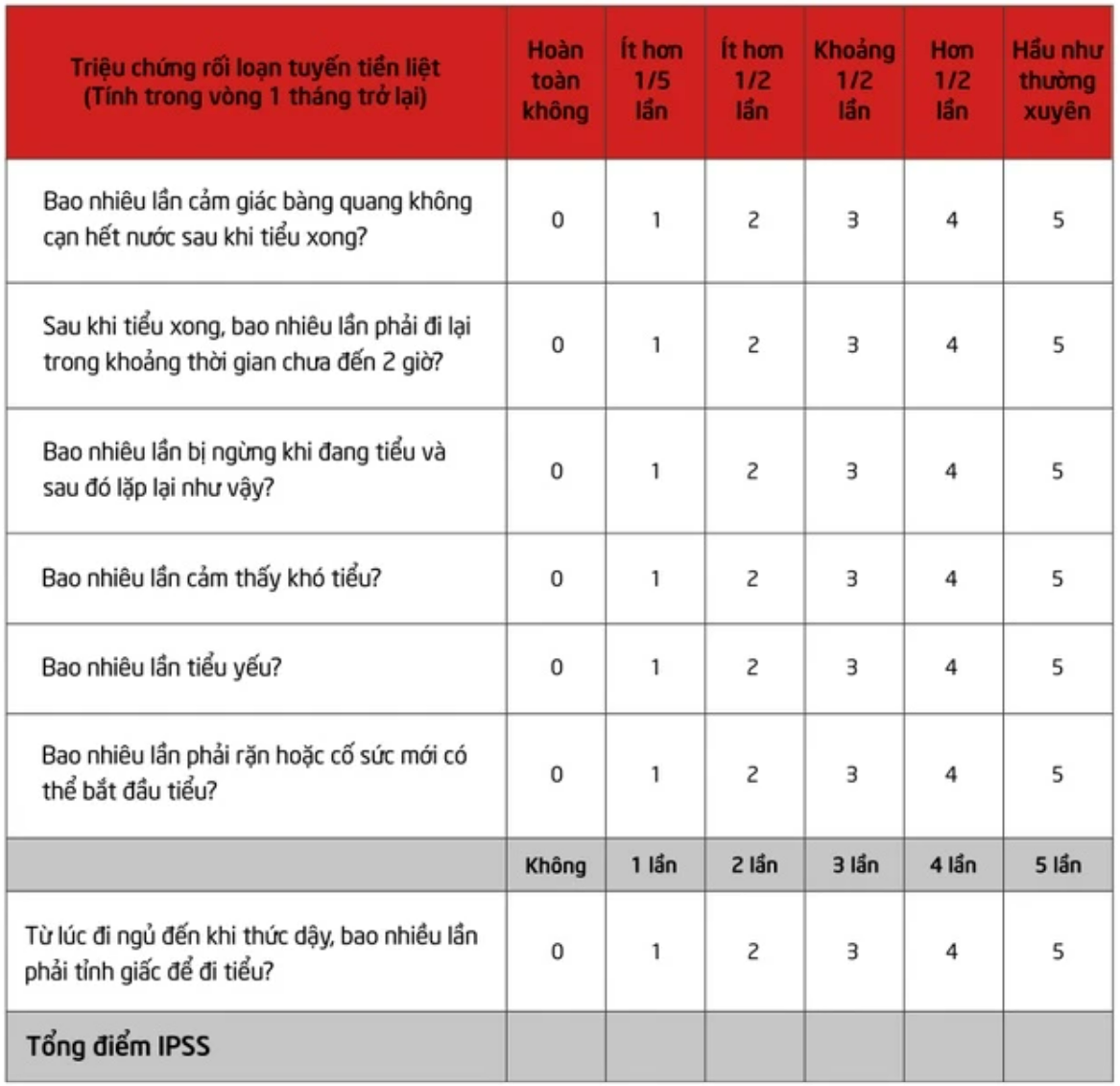 * Thang điểm triệu chứng tuyến tiền liệt Quốc tế (The International Prostate Symptom Score: IPSS)