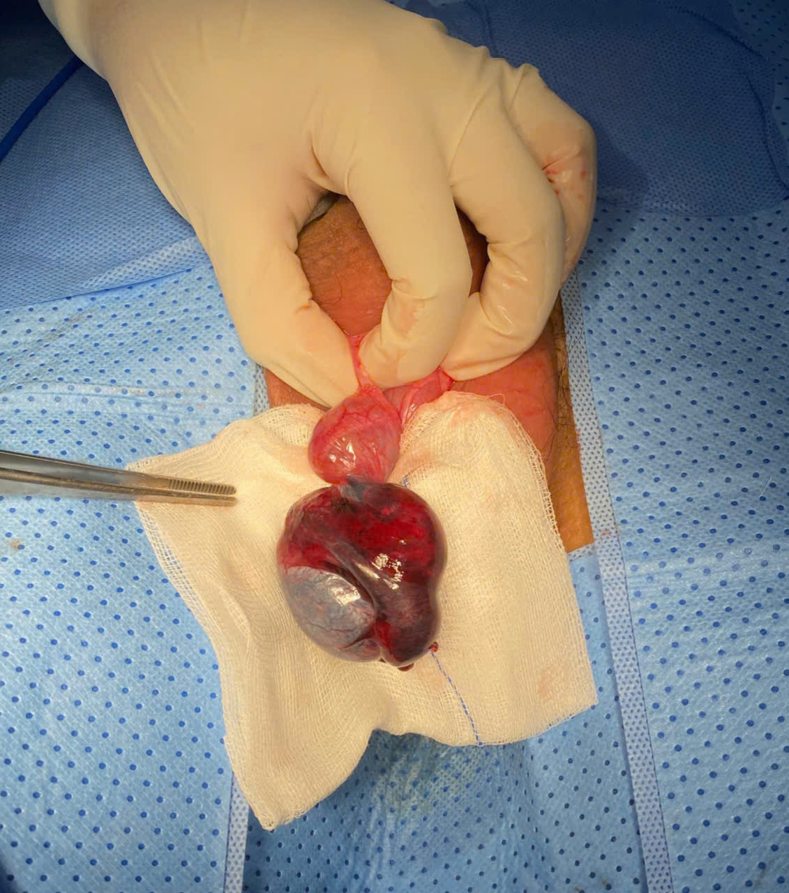 Hình ảnh tinh hoàn phải bị xoắn trong mổ