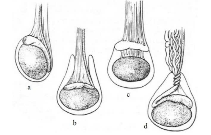 Xoắn tinh hoàn trong bao có thể gặp 3 kiểu khác nhau: